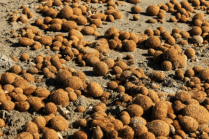 bonyigom. 1. Boleta que trobem en la platja feta a partir del pèl que deixen les algues. 2. Excrement d’animal.