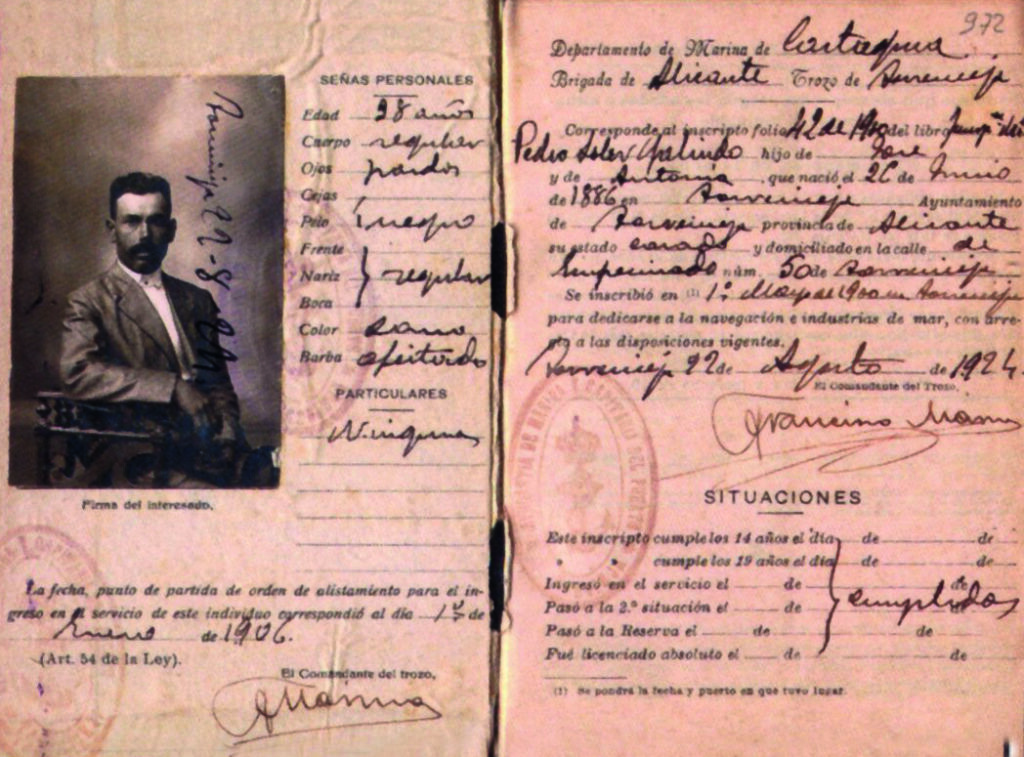 llibreta de la marf. Document d’identitat del mariner on s’hi enregistraven les dades personals i la seua relació d’embarcaments. A més, servia per a aconseguir que els jóvens feren el servei militar per marina.